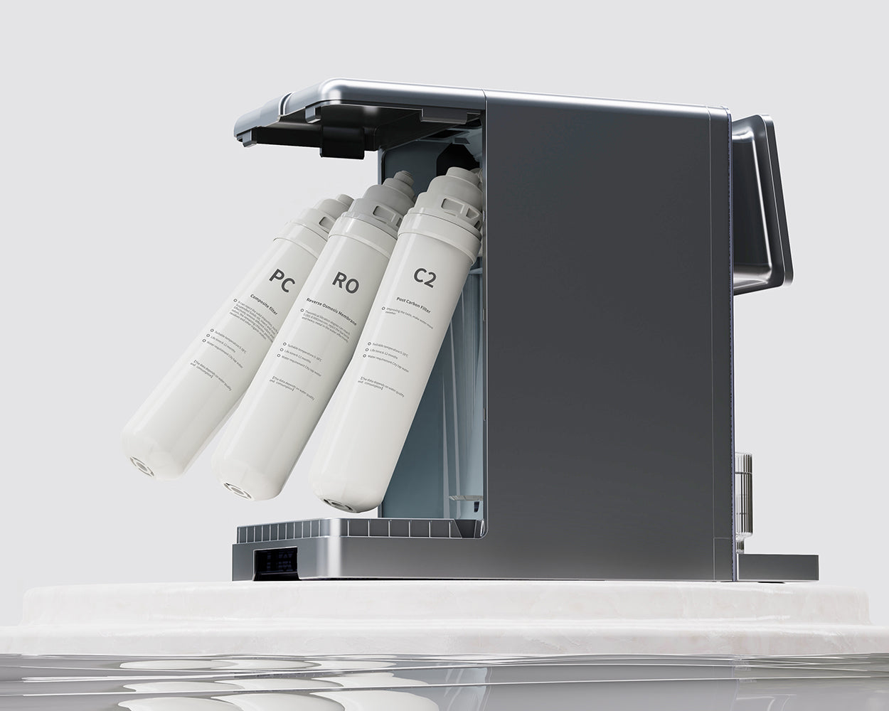 RO-Filter, intelligentes Selbstreinigungssystem, modularer Kartuschenfilter für einfache Erneuerung, 75G 3-Sekunden-Schnellheizsystem mit Seltenerdmembran, Anzeige der Lebensdauer der Filterkartusche.